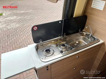 CI Kyros 2 Experience del 2017, camper van maneggevole da 5,99 metri su meccanica Fiat Ducato 2.3 Multijet da 130 CV, ideale per chi cerca maneggevolezza, comfort di viaggio e spazi interni ben organizzati in un furgonato sotto i 6 metri.La disposizione interna è tra le più richieste nel segmento van: dinette anteriore con sedili cabina girevoli, cucina laterale attrezzata, bagno con doccia integrata e pratico lavabo scorrevole, oltre a un comodo letto matrimoniale trasversale in coda da circa 190 x 144 cm.Omologato per 4 posti viaggio, questo CI Kyros 2 Prestige offre una soluzione versatile per la coppia che desidera partire in totale libertà, con il vantaggio di una carrozzeria compatta capiente 2,05 metri e alta 2,61 metri.
