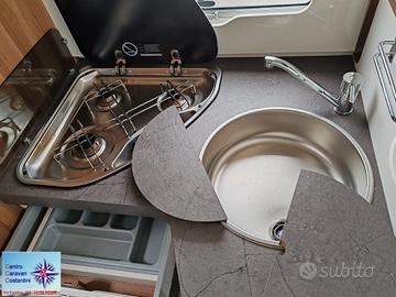 ABS, Antenna satellitare, ARIA CONDIZIONATA MOTORE, AUTORADIO, Chiusura centralizzata, Cruise Control, Cucina di bordo, Dinette centrale, Dinette circolare, Doccia separata, Doccia separata, Energia solare, Fari addizionali, Filtro antiparticolato, FRIGO 150 L, Gancio traino, IMPIANTO RADIO, IMPIANTO TV, Letto basculante, Pannello solare, Park Distance Control, Servosterzo, Sistema di navigazione, SOSPENSIONI ARIA, veranda