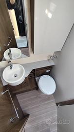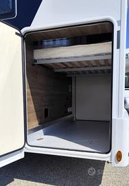 Il profilato con letto basculante per chi cerca tanto spazio, ambienti ben separati e una grande capacità di stivaggio. Ambiente toilette e doccia separati e letto centrale matrimoniale.