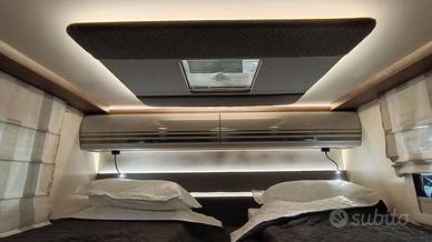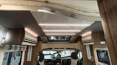 Il profilato con letto basculante per chi cerca tanto spazio, ambienti ben separati e una grande capacità di stivaggio. Ambiente toilette e doccia separati e letto centrale matrimoniale.
