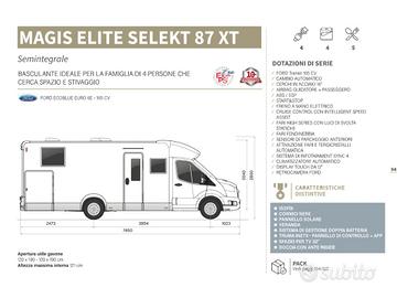 Chilometraggio: 250 Condizioni: usato Immatricolazione: 02/2026 Tipologia: Camper - Parzialmente integrato Carburante: Diesel Tipo di cambio: Automatico LISTINO € 77.090,00 PREZZO ELISCAR € 69.800,00 Nessun obbligo di finanziamento. Passaggio escluso. SPECIFICHE: - Lunghezza: 7,45 m - Larghezza: 2,35 m - Posti viaggio: 4 - Posti letto: 4 - Cilindrata: 2.0 - Potenza: 165 CV ACCESSORI: - Sistemi sicurezza ADAS - Cambio automatico - Start&Stop - Cruise Control - Fari High Series - Sensori di parcheggio anteriori - Sistema infotainment Sync 4 - Climatizzatore automatico - Display touch da 12" - Retrocamera Ford - Isofix - Pannello solare - Veranda - Sistema di gestione doppia batteria - Truma iNetX - Pannello di controllo + App - Spazio per TV 32" - Doccia con ante rigide - Apertura utile gavone 120 x 190 cm - Altezza massima interna 121 cm - Riscaldamento Truma Combi 6 Gas - Illuminazione a Led - Frigorifero compressore 158 lt - Letti gemelli posteriori con possibilità di unirli per ottenere un letto matrimoniale - Letto basculante elettrico - Toilette e doccia indipendenti - Doccia con doppio scarico a pavimento - Dinette face to face con tavolo a libro - Predisposizione inverter Eliscar è un concessionario ufficiale HONDA MOTO - MAXUS - FOTON - C.I. (CARAVAN INTERNATIONAL, GRUPPO TRIGANO) - EMC - GREAT WALL CENTRO USATO AUTO E MOTO Possiamo personalizzare il tuo finanziamento e permutare il tuo usato. PER RAGGIUNGERCI: uscita autostradale Sommacampagna (A4 MI-VE), subito a sinistra, direzione Verona. A 1,5 Km ci trovate sulla Vostra sinistra. Allestimenti ed accessori sono puramente indicativi e da definirsi in sede. Eliscar è un concessionario ufficiale HONDA MOTO per le province di Verona e Mantova. Concessionario ufficiale MAXUS - FOTON - C.I. (CARAVAN INTERNATIONAL, GRUPPO TRIGANO) - EMC - GREAT WALL CENTRO USATO AUTO E MOTO Possiamo personalizzare il tu