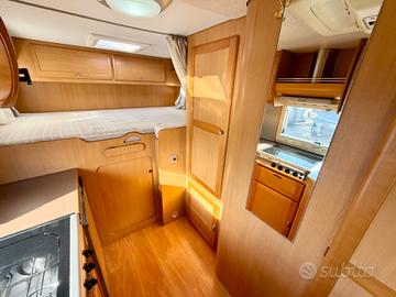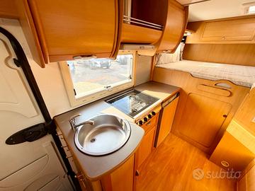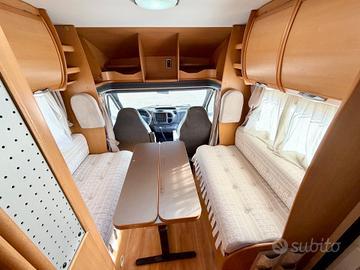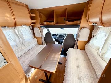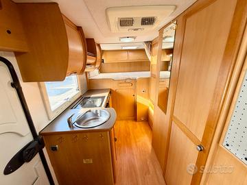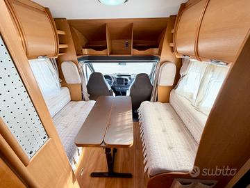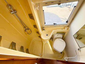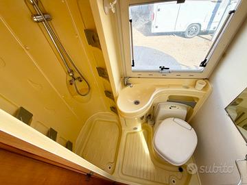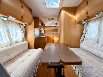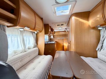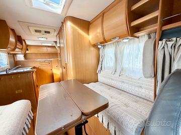 TRUMA TRUMATIC C, FINESTRE SEITZ, MAXI GARAGE, LETTO POSTERIORE CON PASSAGGIO NEL GARAGE, 4 FUOCHI + CAPPA ASPIRANTE CUCINA, BAGNO CON DOCCIA SEPARATA, CASSETTA WC ESTRAIBILE, DINETTE FACE TO FACE