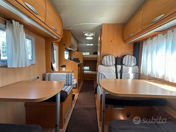 Fiat Ducato 2.3 MJ - 130 cv Posti omologati: 5 - Posti letto: 7 Lunghezza: 7,31 mt - Larghezza: 2,31 mt - Altezza: 3,10 mt. KM : 61.000 Veranda, luce esterna, barre di Design a tetto, climacabina, impianto stereo due Din, maxi oblo' panoramico, 3 turbovent,sospensioni pneumatiche, illuminazione a LED, webasto, cinebasto supplementare,pannello fotovoltaico, rilevatore fughe di gas TRIOGAS, portabici 4 posti.