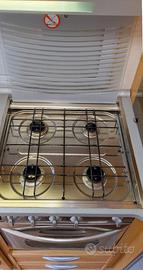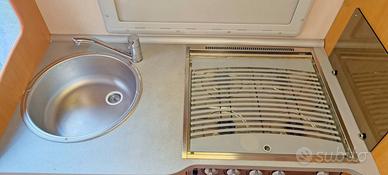 L'ampia e attrezzata cucina offre tutto il necessario per preparare i pasti a bordo. Dispone di un piano cottura a 4 fuochi con copertura in vetro (che funge anche da piano di lavoro aggiuntivo) e di un lavello integrato in acciaio. La dotazione è completata da un forno, un grande frigorifero e ampi cassetti sotto il lavello con chiusura automatica, garantendo praticità e ordine.