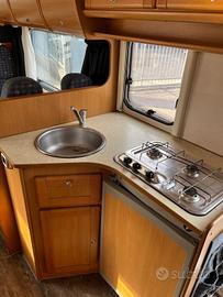 Camper in ottime condizioni dotato di portabici portapacchi, impianto HIFi con woofer, riscaldamento a gasolio Webasto supplementare, 2 Turbovent, illuminazione Led Pannello solare Riscaldamento a veicolo fermo Servosterzo Tendalino Toiletta Letto matrimoniale Letti singoli Letti a castello