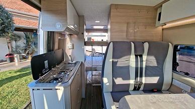 Sotto il cofano, batte un motore Fiat Ducato Euro 6 da 140 cavalli, affidabile e scattante, perfetto per affrontare sia viaggi lunghi che percorsi urbani. La cabina è pensata per offrire un'esperienza di guida confortevole e sicura: aria condizionata, oscuranti plissettati e autoradio con retrocamera rendono ogni tragitto piacevole e rilassato.