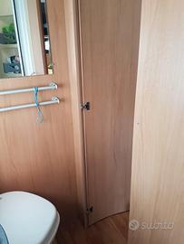 grande bagno con doccia separata doppia cassetta wc. riscaldamento webasto di serie canalizzato aria condizionata a tetto telair parabola satellitare automatica e antenna digitale terrestre tv con braccio visibile da dinete e mansarda