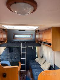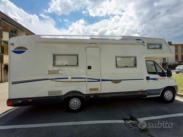 In provincia di Ravenna Metto in vendita 18000€ Camper mansardato CI Mizar GTL, anno 2000, ottime condizioni, patente B, meccanica Fiat Ducato 2800 cc JTD, con 5 marce. Mai incidentato. Omologato 5 posti viaggio, 7 posti letto, due pannelli solari, inverter, antenna TV e antenna satellitare, sistema di riscaldamento webasto programmabile, sistema di riscaldamento da viaggio nella cellulla, veranda con illuminazione led esterna, portabici per tre bici, frigo trivalente, fornello con tre fuochi, doccia separata, oblò centrale panoramico, MaxxFan ,due batterie servizi, finestre modello Seitz. Portaoggetti esterno laterale estraibile con grande capacita'. Letti a castello in coda, letto matrimoniale con doghe in mansarda, e letto/divano fronte dinette e letto matrimoniale ricavabile dalla dinette. Frizione sostituita a 80.000 km Turbina sostituita a 90.000 km Distribuzione sostitutiva a 101.000 km Centralina comandi interni appena sostituita con nuovo modello più tecnologico. Attrezzature da campeggio comprese. Seconda cassetta wc chimico inclusa.