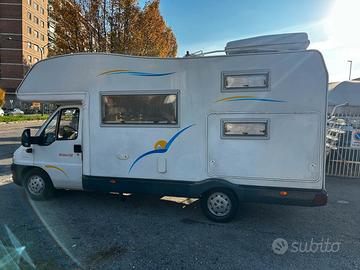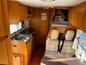 CI RIVIERA 130 GARAGE VARIABILE ,SU FIAT DUCATO 2.3 JTD 110 CV IMMATRICOLATO 03/2004 CON 118000 KM , 6 POSTI A DORMIRE E 6 A VIAGGIARE DISPOSTO CON LETTO MATRIMONIALE IN MANSARDA, DINETTE CENTRALE (CHE DIVENTA LETTOMATRIMONIALE) E 2 LETTI A CASTELLO SUFIANCO GRANDE GARAGE