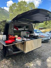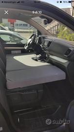 Vendo come da titolo stupendo Citroen spacetourer 180 cavalli euro 6dtemp camperizzato in 10 minuti, con cambio automatico 6 posti singoli con tavolino centrale, sedili posteriori girevoli in versione meeting o direzione di viaggio.. Gancio traino Riscaldamento ausiliare. Completa la vettura con Cucina fatta su misura con 2 fornelli a gas lavandino con pompa elettrica e doccia con tanica di acqua potabile e tanica per acque grigie. Letto matrimoniale che si apre sopra la cucina stessa con materasso pieghevole più letto singolo anteriore (per bambini lunghezza 130 cm) sempre pieghevole, si allestisce in 1 minuto. Cambio per mezzo più grande 9 posti