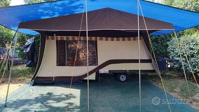 Vendo Carrello Tenda Combi Camp CC 202 del 1984 È in ottime condizioni e pronto all'uso. Caratteristiche principali Apertura rapida: si monta in pochi minuti, qualcuno in più per la chiusura, ma veramente rapido Comfort: oltre al suo materasso rete a doghe su misura e topper da 5 cm, aggiunti per un riposo migliore Praticità: Tendalino per ombra extra, cassone portaoggetti sul timone e bagagliera portatutto. Dimensioni compatte: chiuso: 2.50 m (lunghezza), 1,75 m (larghezza). aperto: 4.50 m (lunghezza), 1,75 m (larghezza). aperto con tendalino: 4.50 m (lunghezza), 3.50 m (larghezza). altezza aperto 2.30 m - lunghezza con timone: 3.50 m quindi facile da trainare e parcheggiare. Peso: 400 kg. Dettagli tecnici: Posti letto: 2 fissi ... possibilità di aggiungerne altri 2 Impianto elettrico: Attacco a 13 poli con freni. Manutenzione fatta: Tenda impermeabilizzata a primavera 2025. Revisione: Valida fino al 25 agosto 2026. il carrello tenda è rimessato all'asciutto ad ASTI prezzo € 1100 trattabili