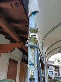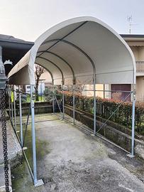 Vendo copertura/box (ideale per camper o barche) lunghezza 750cm, larghezza 300cm, altezza minima 270cm, altezza massima 380cm.