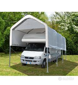 Vedo come dai titolo: COPERTURA CAMPER DREAM SYSTEM - MODELLO ARGENTO INFORMAZIONI GENERALI: La struttura e il telo sono come nuovi, montato la struttura tubolare solo una volta e smontato subito perché non rispecchiava le misure necessarie per i miei spazi. La copertura è addirittura ancora dentro la scatola della spedizione. Vendo come nuovo con possibilità di portarlo a casa vostra se nelle prossimità di Trento è dintorni. Altrimenti ci organizziamo e troviamo una soluzione. STRUTTURA Copertura per camper con struttura base costituita da tubi zincati a caldo del diametro di 60 mm con i relativi distanziali. Il box camper è da comporre, con tubi ad innesto a baionetta già forato. La struttura può essere fissata con tasselli o picchetti ed è predisposta per l’aggiunta di zavorre o kit ruote per renderla mobile con gli accessori. Altezza della struttura regolabile in fase di montaggio. COPERTURA Il telo della tettoia per camper verde è in PVC da camion certificato, protegge dai raggi UV ed è molto resistente nel tempo. Il tutto è borchiato e tensionato con corde elastiche al fine di mantenerlo sempre in tensione, e allo scopo che non si crei delle fosse e si possa fermare la neve, oltre che l’aria con le vibrazioni non lo porti ad usurarsi. Il telo bianco è realizzato come descritto precedentemente, ed è indicato per chi possiede un camper con i pannelli solari; garantisce, infatti il caricando il panello fotovoltaico. Struttura resistente agli agenti atmosferici come grandine, pioggia e vento ed è stata progettata e testata anche per il carico neve nella versione Premium.