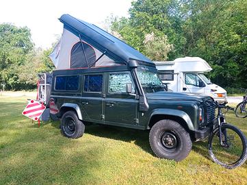defender td4 omologato camper 3 posti serbatoio acqua 80 lt serbatoio gasolio supplementare 45lt tetto a soffietto alu,kab tendalino esterno lavello compressore ammortizzatori rinforzati vettura tenuta molto bene clima