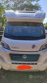 Dinette a L, spaziosa cucina ad angolo, comodo armadio in ingresso, bagno con doccia, letti gemelli trasformabili in matrimoniale king size, letto basculante elettrico due posti. Stufa a gas thruma.