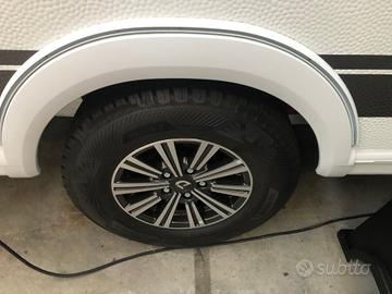 Ruota su cerchio in lega 195 R 14 C LI 106, Portata maggiorata 1.700 kg (incl. ruota in acciaio 195 R14 C LI106) Piedini stabilizzatori inclusi Big Foot's Oblò Heki II inclusa cornice illuminata Porta con zanzariera Materasso a 7 zone in materiale climaregolatore Impianto di termoventilazione Illuminazione indiretta Presa USB per binario spot Predisposizione climatizzatore Boiler therme 5 lt