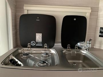 CONTROPORTA IN ZANZARIERA, FRIGO TRIVALENTE, OBLO' PANORAMICO, RISCALDAMENTO, WC A CASSETTA