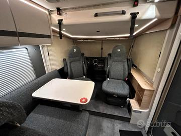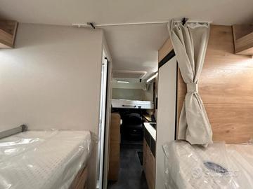 DETHLEFFS GLOBEBUS I 4 - MOTORHOME COMPATTO E DI ALTA GAMMA Proponiamo Dethleffs Globebus I 4, motorhome compatto ma estremamente completo, ideale per chi desidera comfort da integrale in dimensioni contenute, senza rinunciare a qualità costruttiva, isolamento e spazi intelligenti. Meccanica: Fiat Ducato 2.2 Multijet 140 CV (103 kW) - Euro 6 Tipologia: Motorhome con letti gemelli posteriori trasformabili in matrimoniale e garage Posti omologati: 4 Posti letto: 4 Dimensioni e pesiLunghezza: 6.600 mm Larghezza: 2.200 mm Altezza: 2.810 mm Massa in ordine di marcia: 2.866 kg Dotazioni principali di serieTelaio Fiat Ducato ribassato Light 3.499 kg Cerchi in lega da 16" neri Climatizzatore cabina e Cruise Control Sistemi di sicurezza completi: ABS, ESP, ASR, Traction Plus, Hill Holder, Hill Descent, Crosswind Assist Sedili cabina girevoli con braccioli, volante e pomello in pelle Oscuranti cabina plissettati Pneumatici invernali M+S Camping Ampio garage posteriore riscaldato, illuminato, con presa 230V Costruzione Lifetime Dethleffs con elevato isolamento termico Letti gemelli posteriori con reti ergonomiche e materassi premium a 7 zone Letto basculante manuale Dinette ad L con tavolo monogamba Cucina gourmet con piano cottura a 2 fuochi e ampio piano di lavoro Frigorifero alto 137 L con congelatore separato (AES) Bagno vario con finestra Riscaldamento a gas 6 kW con boiler acqua calda Illuminazione full LED con Light Moments Predisposizione pannello solare, climatizzatore a tetto, retrocamera e antenna satellitare Batteria servizi 95 Ah CondizioniVeicolo di alto livello costruttivo, ideale per viaggi in tutte le stagioni, perfetto per chi cerca un motorhome compatto ma completo sotto ogni aspetto. Il prezzo esposto si riferisce al veicolo nella configurazione base ed è al netto degli optional installati e delle spese di messa in strada. Contattaci per un preventivo personalizzato e vieni a vederlo dal v