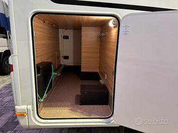 La parte interna è così disposta: letto matrimoniale trasversale posteriore, garage sottostante, perfetto per stivare tutto l'occorrente.