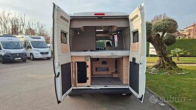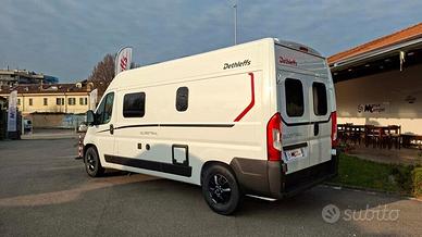 Omologato per 4 persone con 2 posti letto questo Dethleffs Globetrail Active 600 DS vi porterà lontano!Il layout è il classico con un grande letto matrimoniale trasversale posizionato nella parte posteriore del camper, sopra ad un ampio garage utile per stivare tutto l'occorrente di cui avrete bisogno.La zona giorno è composta dalla dinette e dalla cucina lineare a gas.Quest'ultima è fornita di 2 fuochi, lavandino, un ampio frigorifero a compressore da 90 Lt ed un utilissimo piano di appoggio.Il bagno si contraddistingue per la doccia con parete varia, molto comoda e spaziosa rispetto alla classica configurazione.L'acqua calda, così come il riscaldamento, sono dati dal sistema Truma Combi a gasolio 6D.Lungo meno di 6 metri, questo van è su base Fiat Ducato 140 Multijet Euro 6 con 140 cavalli e cambio manuale.Compreso nel prezzo troverete inoltre l'aria condizionata in cabina, oscuranti plissettati in cabina e zanzariera alla porta d'ingresso.Tra le altre dotazioni abbiamo: