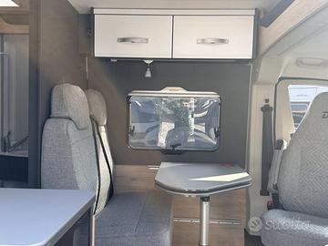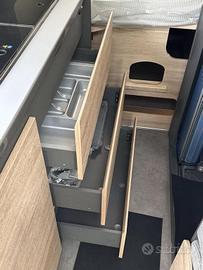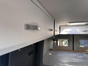 (Presa doppia USB aggiuntiva nella parte anteriore a sinistra - Presa 12V nella zona posteriore, in basso a sinistra - Presa 230 V nel pensile della parte anteriore a sinistra (zona dinette) - Illuminazione indiretta - Tubo luminoso a LED in cucina - Predisposizione impianto solare)