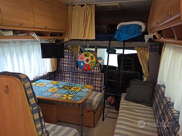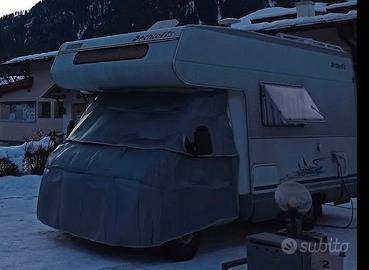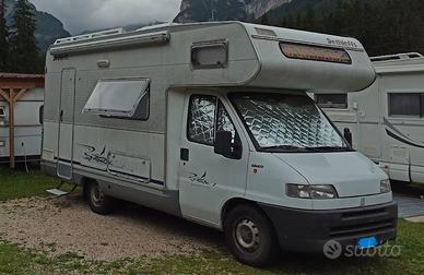 Dethleffs Globetrotter mansardato compatto lungo 6 metri modello A5830, su meccanica Fiat Ducato 2.8 turbodiesel, immatricolato nel 1999, poco utilizzato nonostante l'età avendo percorso poco più di 100.000km reali. Sempre tagliandato e tenuto rimessato in garage coperto, si presenta pluriaccessoriato avendogli apportato tantissime modifiche e migliorie nell'arco degli anni, e non andando mai al risparmio... solo alcune tra queste: