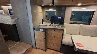 Il Dethleffs Trend T 7057 EBL è il compagno ideale se staicercando un camper semintegrale lussuoso di qualità superiore. Con unalunghezza di 7,40 metri, offre 4 posti letto e una disposizione interna pensataper garantire comfort e praticità in ogni viaggio. Il motore Fiat Ducato da 140 cavalli, con cambio manuale,assicura una guida fluida e affidabile. In cabina troverai aria condizionata eil Naviceiver Dethleffs con navigatore integrato studiato appositamente per icamper, per un'esperienza di viaggio piacevole e sicura. La zona giorno accoglie una dinette spaziosa, face to face eaccogliente, ideale per rilassarsi o pranzare in compagnia, mentre la cucina aL a gas con 2 fuochi, lavandino e frigorifero trivalente da 137 litri tipermette di preparare pasti con la massima comodità anche in viaggio. La zona notte è un vero punto di forza: letti gemelli incoda, trasformabili in un Maxi letto matrimoniale, che sovrastano un grandegavone con doppia entrata. Inoltre, la porta divisoria separa la zona nottedalla zona giorno e funge anche da chiusura per il bagno, che è dotato didoccia spaziosa separata con finiture curate nei dettagli. Un secondo letto matrimoniale basculante elettrico sopra la dinette completa lazona notte, offrendo ulteriore comodità per gli ospiti. Tra le dotazioni incluse nel prezzo troviamo: Secondo portellone per maggiore praticità Predisposizione pannelli solari Predisposizione TV 12V con supporto incluso perschermo piatto Tappezzeria parzialmente in pelle Heron Serbatoio diesel da 90 litri Finestre con cornice Naviceiver Dethleffs con DAB+, con trucknavigation, Apple CarPlay/Android Auto e retrocamera integrata Aria condizionata in cabina Riscaldamento ad aria calda a gas 6 kW conelemento di riscaldamento elettrico 1,8 kW e boiler per acqua calda conelemento di controllo digitale Letto Basculante Serbatoio acque grigie isolato Fissaggi Isofix Cerchi in lega da 16" neri Serbatoio acque chiare isolato e riscaldato Il Dethle