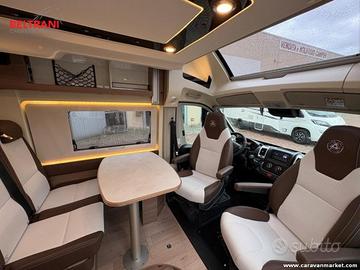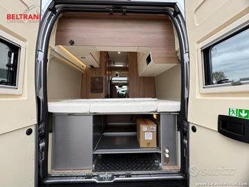 Con soli 5.900 km, ideale per chi cerca un van recente, bello da vedere e pratico da vivere. Lo skyroof panoramico anteriore dona ampia luminosità alla dinette, mentre le finiture curate con pensili stondati rendono l'ambiente interno moderno e confortevole. Molto intelligente la soluzione del bagno separato dalla doccia, che permette di creare una comoda zona spogliatoio e aumenta la privacy a bordo. Completo anche nella zona notte, con 4 posti letto grazie ai due letti matrimoniali, uno trasversale in coda e uno basculante elettrico, perfetti per ospitare comodamente 4 persone.