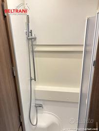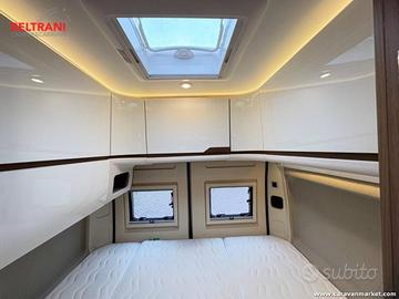 Con soli 5.900 km, ideale per chi cerca un van recente, bello da vedere e pratico da vivere. Lo skyroof panoramico anteriore dona grande luminosità alla dinette, mentre le finiture curate con pensili stondati rendono l'ambiente interno moderno e accogliente. Molto intelligente la soluzione del bagno separato dalla doccia, che permette di creare una comoda zona spogliatoio e aumenta la privacy a bordo. Completo anche nella zona notte, con 4 posti letto grazie ai due letti matrimoniali, uno trasversale in coda e uno basculante elettrico, perfetti per ospitare comodamente 4 persone.