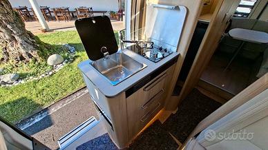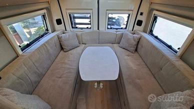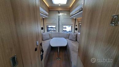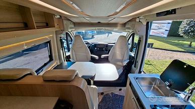 In cabina tutto è pensato per il comfort e la sicurezza: aria condizionata, oscuranti plissettati, digital cockpit e un grande schermo multimediale, con retrocamera integrata.La zona notte è composta da un letto basculante nella zona anteriore e da un ulteriore letto matrimoniale che si ottiene facilmente trasformando la dinette, posta posteriormente. La cucina è ampia e ben studiata, dispone di due fuochi a gas, lavello e frigorifero a compressore da 84 litri, offrendo tutto ciò che serve per preparare pasti anche in viaggio.