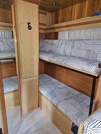 “Unico camper invece di essere di legno È costruito tutto in alluminio” Camper pronto a partire tutto completamente revisionato. Gomme nuove,distribuzione,freni e pompa nuova,cambio revisionato tutto certificato. Sigillature,fari nuovi con lampade a led,aria condizionata sotto la panca,oblò nuovi,gruppo elettrogeno elettrolux tek25 con accensione dall’ interno,pannello solare,2 batterie 100 A,2 serbatoi acque chiare in acciaio inox,tutte le ghigliottine con apertura e chiusura elettriche,portabici. Tutto funzionante non ha una cosa che non funziona. Ho anche il portabagagli sopra al tetto tutto in alluminio,l’ho tolto perché non lo usavo.