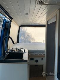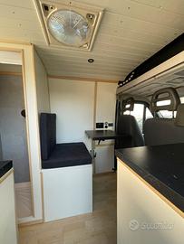 Van appena allestito e omologato completo di tutti i servizi: riscaldamento diesel 2kW con termostato, app e telecomando, aria condizionata in cabina, ventilazione con 2 oblò ed estrattore, finestra Dometic 90x45cm sul portellone laterale Molto alto da terra, in ottimo stato di carrozzeria.