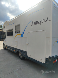 Ducato 2800 136cv, in perfette condizioni, turbina nuova, alternatore Bosch nuovo con cinghia, tagliando completo. Distribuzione eseguita a 96000km .Gomme nuove 4 stagioni montate fine luglio 2024, (percorsi 7000km), sospensioni posteriori con soffietti. Impianto fotovoltaico con due pannelli total Black ( 250w)con parallelatore e controller Victron Energy Bluetooth con App. Batteria servizi 120 A scarica lenta Gel nuova, batteria motore un anno di vita. All' interno Porta con zanzariera incorporata, cucina 4 fuochi, forno e scalda vivande, frigo grande con congelatore separato ( resistenza 220 sostituita luglio 2025), interno ed esterno full led, turbovent, oblò sopra la doccia, doccia separata, boiler acqua calda (50°/70° ), serbatoio 100lt acque chiare e serbatoio 100lt acque grigie, N.2 cassette C200, ghigliottina sostituita Luglio 2025, TV 12v con parabola Sat, webasto 5kw che riscalda tutti gli ambienti compreso il grande garage, grande mansarda in Alcantara con luci full led con incorporata presa USB su entrambi i letti matrimoniali. 4 posti viaggio e 6 posti letto. Grande Garage con pedana in alluminio per caricare lo scooter, tendalino Omnistor con striscia led.