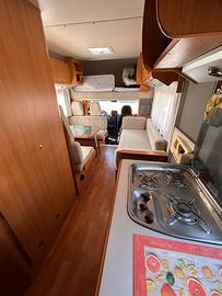 I letti a castelli posteriori sono molto comodi (larghezza 95 cm), tendalino fiamma, cucina 3 fuochi, doppio scomparto x bombole del gas + 2 vani portaoggetti esterni aggiuntivi, tutte le finestre sono Seitz con zanzariera.