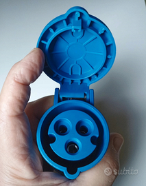 Spina italiana 3 poli 16A + Presa industriale IEC con coperchio che protegge la presa da agenti esterni quando non utilizzata.