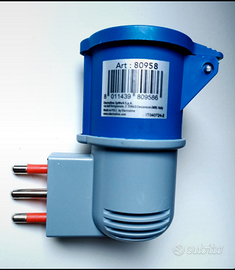 Indispensabile per i camper e molto utile in campeggio per collegarsi alla colonnina con attacco normale da 16A. Compatibile anche con barche, caravan, roulotte, cantieri che utilizzano lo stesso attacco.