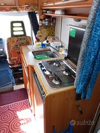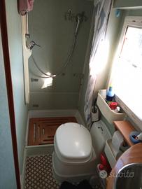 fiat Ducato 2800cv146 aria condizionata in cabina e in cellula sempre rimessaggio coperto batteria di servizio e cellula sono nuove il camper non ha e non avuto mai infiltrazioni lunghezza 6.50 pannelli solare antenna con televisione ruota di scorta sotto il telaio 4 persone in viaggio 4 a dormire molti altri accessori il mezzo non a nessuno intervento da fare