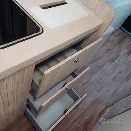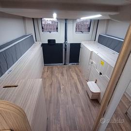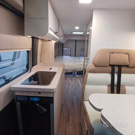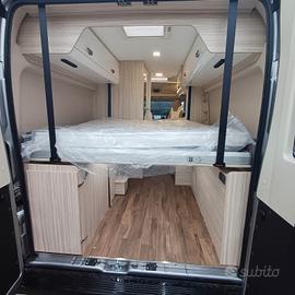 Lunghezza 5.99mt Larghezza 2.05mt | 4 posti viaggio | 4 posti letto- Oblò Midi Heki 500X700- Zanzariera portellone laterale- Gradino elettrico- Pannello solare- Veranda- Autoradio Pioneer touch-screen 9" con retrocamera e CarPlay- Cerchi in lega 16"- Fendinebbia- Volante e cambio in pelle- Riscaldamento Webasto Airtop 40 SPORT Diesel- Frigorifero a compressore- Luce esterna-Oscuranti plissettati in cabina -start e stop, fix e go, doppio air bag, cruise control, sbinatore elettrico -traction , pannello solare, finestre con telaio a filo carrozzeria letto elettrico posterioire pronta consegna