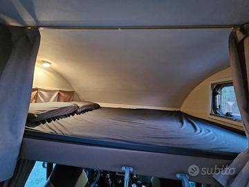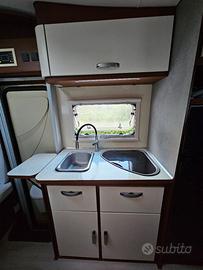Camper Elnagh Baron 53G del 2015 su Ducato X290, 2300 cc, 130 kv, Diesel euro5+, cambio manuale a 6 rapporti, 89.500 km. Lunghezza 6,99 m Larghezza 2,35 m Altezza 3,05 m 5 posti viaggio, 5 posti letto + 1. Letti gemelli in coda, letto matrimoniale mansardato e dinette trasformabile in letto. Accessori: - autoradio 2din touch - telecamera posteriore - cruise control - limitatore di velocità - computer di bordo - hill control (sia salita che discesa) - climatizzatore - ABS - Block Shaft - protezione OBD - stacca batteria - oscuranti plissettati Remis - sedili guida e passeggero girevoli - batteria servizi agm - porta ingresso con zanzariera - finestre e oblò con oscuranti e zanzariere - bagno con finestra - bagno con doccia separata - cucina 3 fuochi e lavello separato - frigo Thetford trivalente da 145 litri con frizeer separato da 25 litri - letto mansarda con protezione anticaduta - letti gemelli con allunga per trasformarlo in un'unico letto a tre piazze - dinette traaformabile ib letto - climatizzatore per la cellula Dometic 220 v - supporto TV con predisposizione per antenna - riscaldamento Truma Combi a gas (riscaldamento + acqua calda) - serbatoio acque chiare 110 litri - serbatoio acque grigie 100 litri - luci interne a Led - luci ingresso esterna a Led - tendalino Fiamma F45 - cerchi in lega da 16 - ruota di scorta - Truma duo control CS verticale + filtri gas Truma - ampio garage posteriore - portabici posteriore Fiamma 3 posti