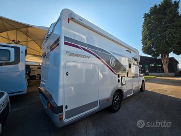 Prezzo base euro 69.280 - PACK BARON 75° : Fendinebbia, Paraurti anteriore in tinta con la carrozzeria, Piastra paramotore nera, Cerchi in lega da 16" bicolore, Volante e pomello del cambio in pelle, Plancia Techno ( inserti in alluminio cromato ), TPMS - Controllo automatico della pressione dei pneumatici, Freno a mano elettrico, Radio 9'' PIONEER Bluetooth/Apple Car Play/Andoid Auto, Videocamera posteriore, Pannello solare da 200 W con regolatore MPPT, Oscuranti plissettati - PACK ENJOY OUTDOOR : Veranda T4200 ( Bianca ), Collegamento gas esterno, Prendi l'acqua con la doccia in garage, Presa multimediale esterna (12V / 220V / TV), Guide e ancoraggi in garage euro 1.290 - Messa in strada eruo 1.800