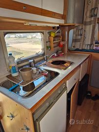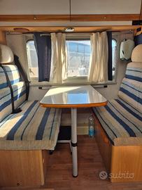 Letto matrimoniale in mansarda e letto trasversale posteriore , più volendo altri due posti letto trasformando la dinette.