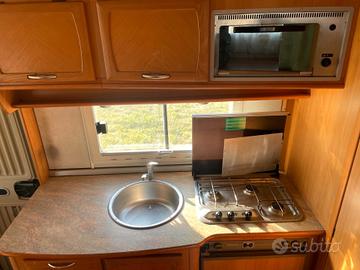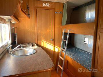 Classico mansardato di soli mt 6.90 adatto alla famiglia con ben 5 posti viaggianti e 7 posti letto montato sulla fantastica meccanica Mercedes 2800 td.