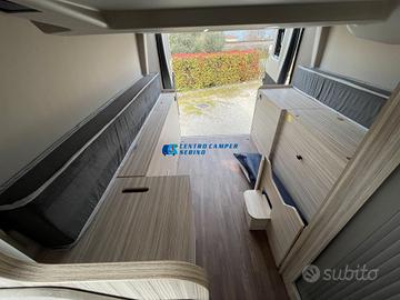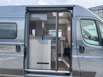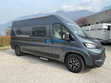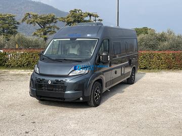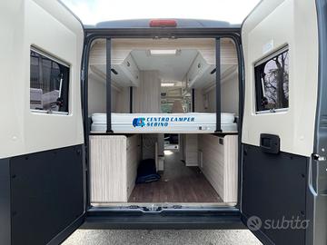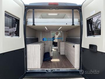 Elnagh E-VAN 6 XL Premium, camper puro furgonato 5,99 mt con maxi letto matrimoniale posteriore basculante elettrico regolabile in altezza (dimensioni c.a.: 190/160x160 cm se posizionato in alto e 190/160x190 cm se posizionato in basso) che permette di aumentare il vano di carico posteriore. Perfetto per chi desidera stivare internamente le biciclette o per avere un grande letto sempre disponibile. Camper van in pronta consegna e in PROMOZIONE: € 63.000 chiavi in mano tutto incluso (anziché prezzo di listino € 66.660) INCLUSI NEL PREZZO: - VERNICIATURA METALLIZZATA IRON GREY - SPESE DI IMMATRICOLAZIONE E MESSA SU STRADA - 1 BATTERIA SERVIZI AGM La versione PREMIUM comprende: Meccanica 140cv Riscaldamento a DIESEL Webasto Air Top Evo 40 (solo boiler a GAS) Tavolo dinette ripiegabile e con prolunga Luce esterna a LED Pedana doccia in legno Tappezzeria in microfibra WAVE SOFT PACK DRIVE (Midi Heki 70x50, Zanzariera ingresso, Gradino ingresso elettrico, Oscurante plissettato cabina) PACK PAINTED BUMPER con fari fendinebbia PACK TWO COLOR ALLOY WHEEL con cerchi in lega 16'' PACK MEDIA (Radio 9'' PIONEER Bluetooth Apple Car Play&Android Auto, Comandi radio al volante, Retrocamera) Veicolo Nuovo Motore FIAT DUCATO 2,2 MJ 140 CV 3500 kg (patente B) Cambio manuale Lunghezza 5,99 mt Larghezza 2,05 mt Altezza 2,65 mt (interna 1,89 mt) Posti viaggio omologati: 4 Posti Letto: 2 Freno a mano elettrico Passo 4035 mm Massa rimorchiabile 2500 kg Aria condizionata cabina AirBag guidatore/passeggero ABS ESC Traction+ Cruise Control Chiusura centralizzata Finestre portelloni apribili e con oscurante e zanzariera Cucina con piano cottura a 2 fuochi ad accensione elettrica, lavello separato e prolunga piano di lavoro Frigorifero a compressore 70 lt Bagno con doccia, lavabo a scomparsa e finestra doppio vetro opaca WC con recupero a cassetta Serbatoi acque: chiare 85 lt (20 lt in viaggio) / grigie 90 lt Centro Camper Sebino, Via Giardino 1 Sale M