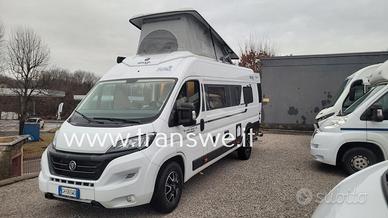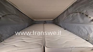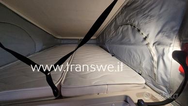Il veicolo è dotato di tetto pop-up che aumenta notevolmente lo spazio abitabile e l'altezza interna, rendendo la vita a bordo molto più confortevole. La zona notte superiore offre un letto matrimoniale aggiuntivo, perfetto per ospitare fino a 4 persone.