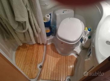 Ottime condizioni, rimessato sempre al coperto. Ampio gavone porta moto riscaldato, ideale per vacanze invernali. Ottima coibentazione. Bagno rifatto con pedana in legno, turbovent, allarme triogas, doppio serbatoio acque chiare, scarico acque grigie elettrico, sospensioni ad aria Alko, ampio tendalino, pannelli solari, finestre seitz con oscuranti e zanzariere, oscuranti interni termici in cabina, frigo trivalente, forno a gas, pneumatici invernali ed estivi, impianto CB e radio sul tetto.