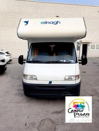 Si vende Camper mansardato Elnagh 65 Garage, il camper è tutto in vetroresina mancano le seligrafie esterne per volontà del cliente. Il cCamper ancora in buone condizioni nessuna infiltrazione , revisione fatta questo mese, prima della consegna verranno sostituite tutte e 4 le gomme e sostituita la cinghia di distribuzione più tagliando olio e filtri. nel camper vi sono istallati diversi accessori di cui sospensioni aria AL.KO veranda mai aperta, porta bici per 3 bici , rilevatore di fughe gas TV. Qualunque prova anche con vostro meccanico di fiducia. il camper é in Conto vendita.