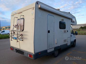 Vendo per cambio tipologia Elnagh Marlin-58 su base Fiat Ducato 2800cc JTD 126 CV. mt. 5.99, 6 posti viaggio e 6 posti letto. Completamente funzionante. 130.00km. Dotazioni e accessori: stufa Truma; frigorifero trivalente; piano cottura a 3 fuochi; illuminazione led; alloggiamento per 2 bombole 10 kg gpl; boiler 12 litri; bagno con doccia separata; portabici 3 posti(disponibile il quarto binario); Tendalino fiamma 450s; pannello solare 12V 140W; Aria condizionata cellula Dometic freshjet 1100; Inverter da 2500W Vevor. Cinghia rifatta a 97.000 KM. Bollo scadenza gennaio 2027. Revisione scadenza Settembre 2027. Con qualche difetto estetico che rende il prezzo leggermente trattabile.