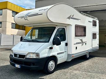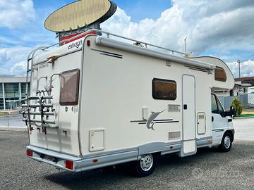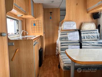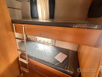 L'Elnagh Marlin 64 è un campermansardato di 6,50 metri, progettato per offrire comfort e versatilità a tuttala famiglia. Grazie ai seiposti letto, con matrimoniale in mansarda, due letti a castellofissi e una dinette trasformabile, garantisce spazio e comodità sia di giornoche di notte.