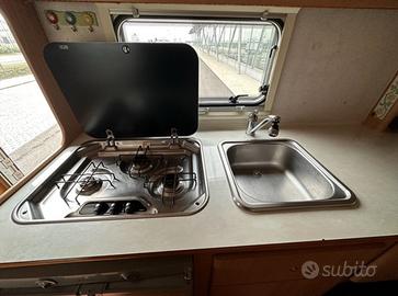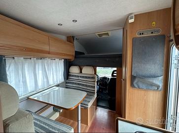 Elnagh Marlin 65G su Fiat Ducato 2.8 da 145 cv Anno 2005 143.000 km Lunghezza 6,77 mt No Clima in cabina No Clima in cellula Cinghie distribuzione fatta il 03/2025 con Fattura a 141000 Batteria motore sostituita 2026 con Fattura Revisione appena fatta. Chiusura centralizzata ed allarme perimetrale. Mansardato con matrimoniale trasversale in coda Due letti matrimoniali sempre pronti. Dinette classica, trasformabile in un altro letto matrimoniale comodo. Cucina laterale in linea con piano lavoro, 3 fuochi. Bagno con wc a cassetta estraibile e doccia separata ( piano doccia e antibagno rifatto) Pannello solare da 100w Radio 2 din con telecamera posteriore da montare Sensori di parcheggio posteriori 6 posti viaggio omologati 6 posti letto Stufa Truma a Gas Garage molto spazioso sotto matrimoniale in coda. Tendalino Omnistar Nessuna infiltrazione, attestata da certificazione Aprile 2026