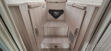 antifurto, Attacco esterno acqua, Cerchi in lega da 16", Condizionatore cabina, Condizionatore in cellula, Cruise Control, Doccia separata, Gavone posteriore, impianto stereo, Letto, Letto basculante, luce esterna, Maxi frigorifero, pannello solare, Porta con zanzariera, Portamoto, Radio doppio Din, Sospensioni ad aria., telecamera posteriore, Veranda, WC